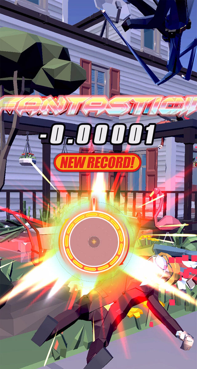 サークルが小さくなって、円に重なった時に上手くタップできて、そのときにどんな映像が再生されると一番気持ちだろうと考えた時「そりゃぁ人が吹っ飛ぶのが一番面白い」と思いがいたりました。